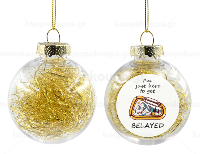 I'm just here to get Belayed, Transparent Christmas tree ball ornament with gold filling 8cm