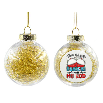 Show me your bobbers and i will show my rod , Transparent Christmas tree ball ornament with gold filling 8cm