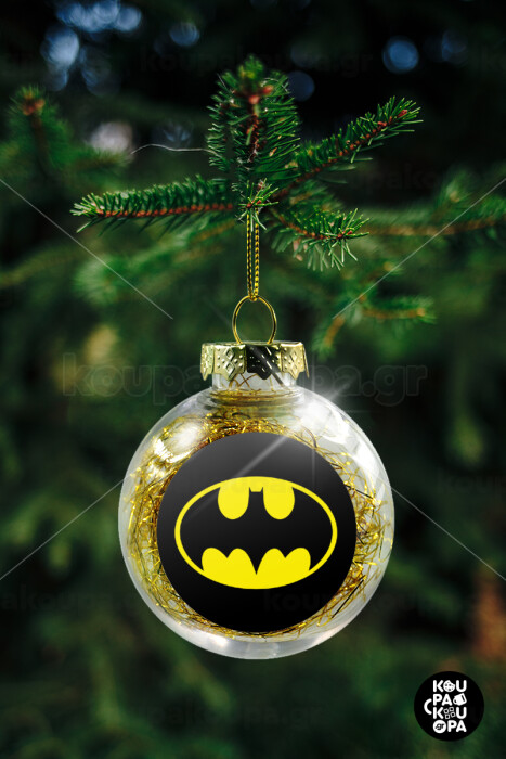 Batman, Transparent Christmas tree ball ornament with gold filling 8cm