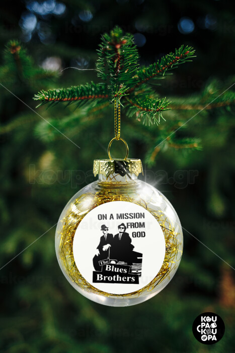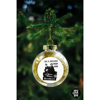 Blues brothers on a mission from God, Transparent Christmas tree ball ornament with gold filling 8cm