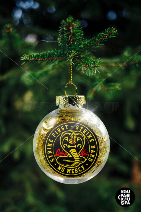 cobra kai strike first dojo, Transparent Christmas tree ball ornament with gold filling 8cm