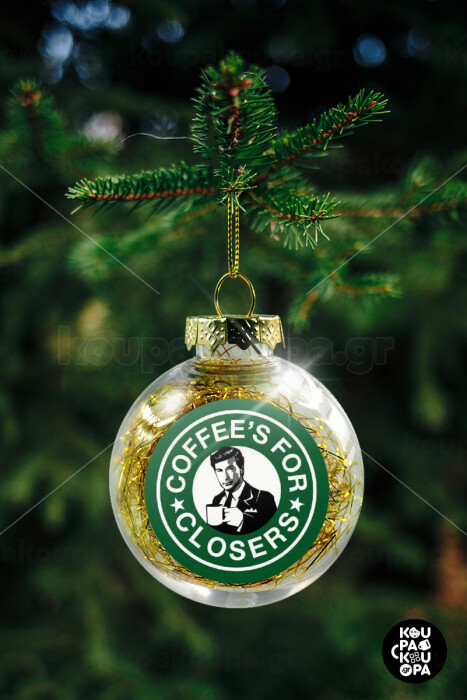 Coffee's for closers, Transparent Christmas tree ball ornament with gold filling 8cm