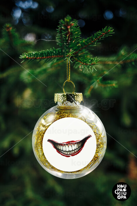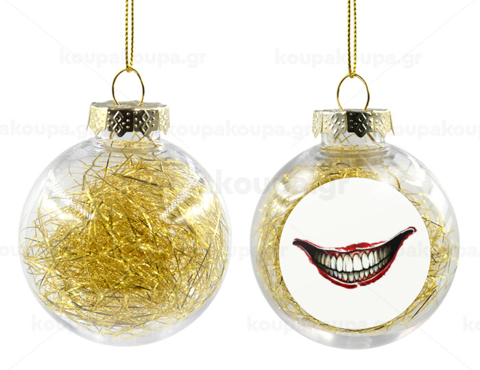 Joker smile, Transparent Christmas tree ball ornament with gold filling 8cm