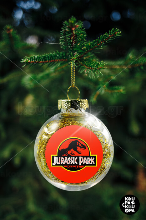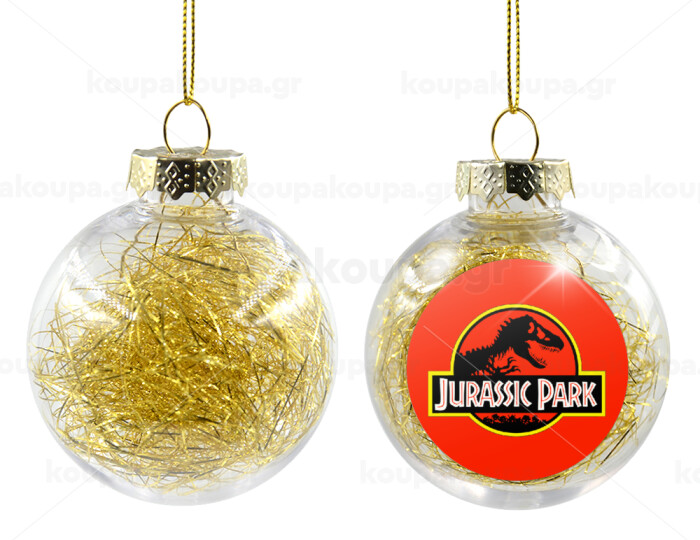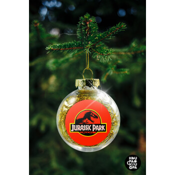 Jurassic park, Transparent Christmas tree ball ornament with gold filling 8cm