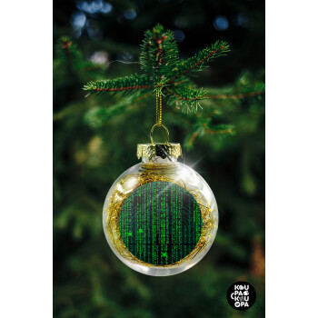 Matrix, Transparent Christmas tree ball ornament with gold filling 8cm