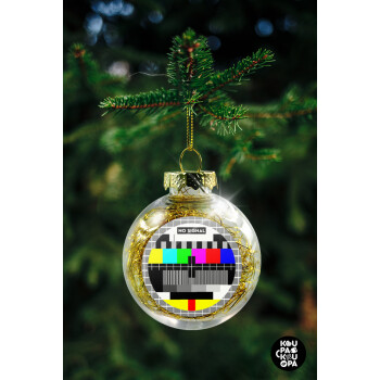 No signal, Transparent Christmas tree ball ornament with gold filling 8cm