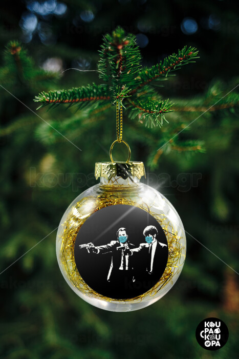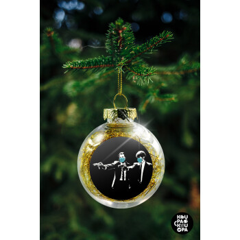 Pulp Fiction guns, Transparent Christmas tree ball ornament with gold filling 8cm