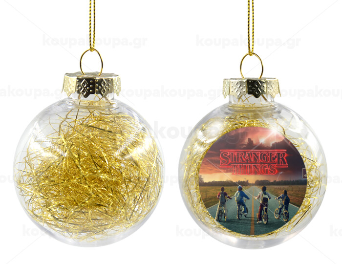 Stranger Things city, Transparent Christmas tree ball ornament with gold filling 8cm