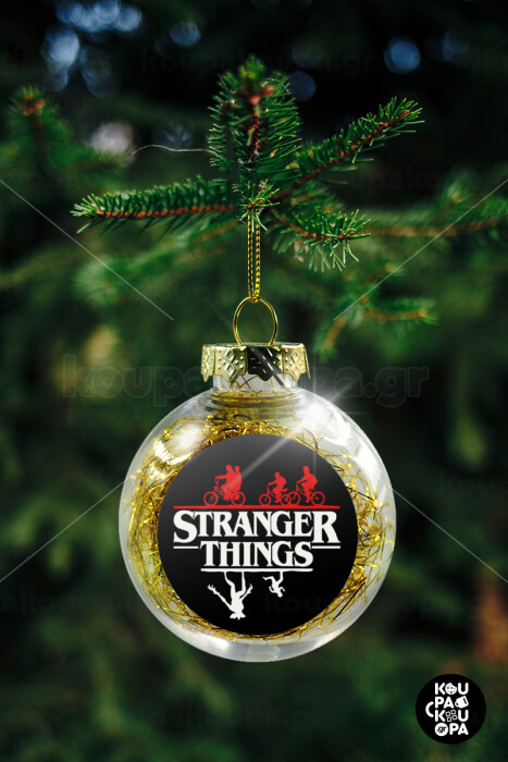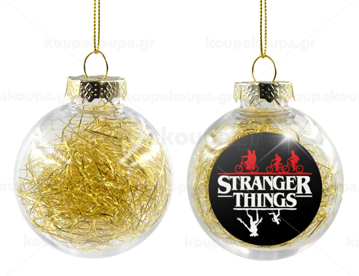 Stranger Things upside down, Transparent Christmas tree ball ornament with gold filling 8cm