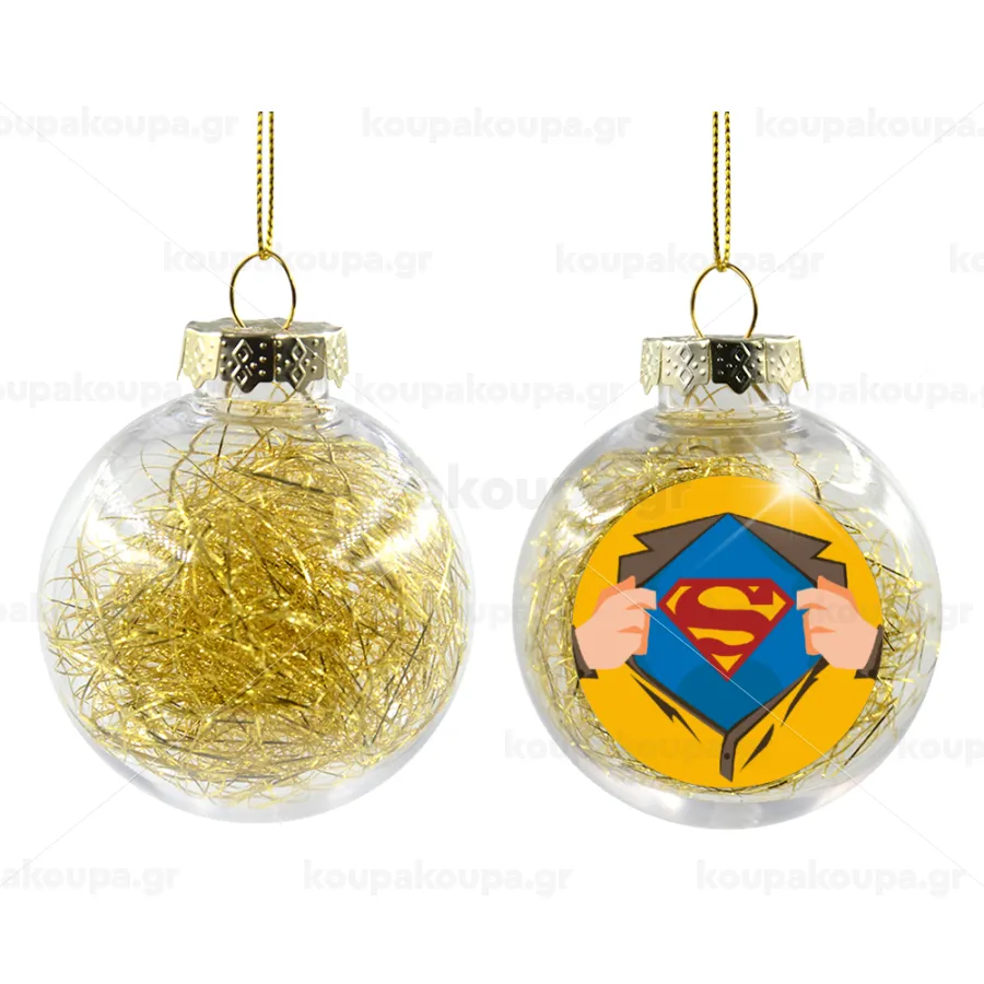 Superman hands, Transparent Christmas tree ball ornament with gold filling 8cm
