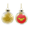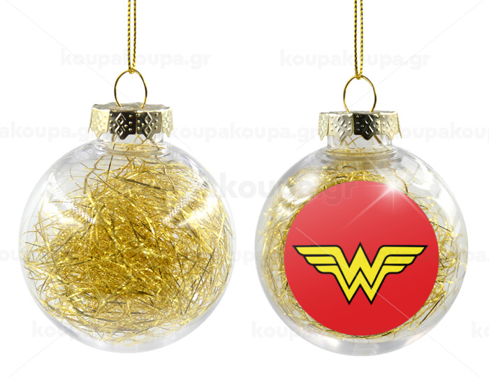 Wonder woman, Transparent Christmas tree ball ornament with gold filling 8cm