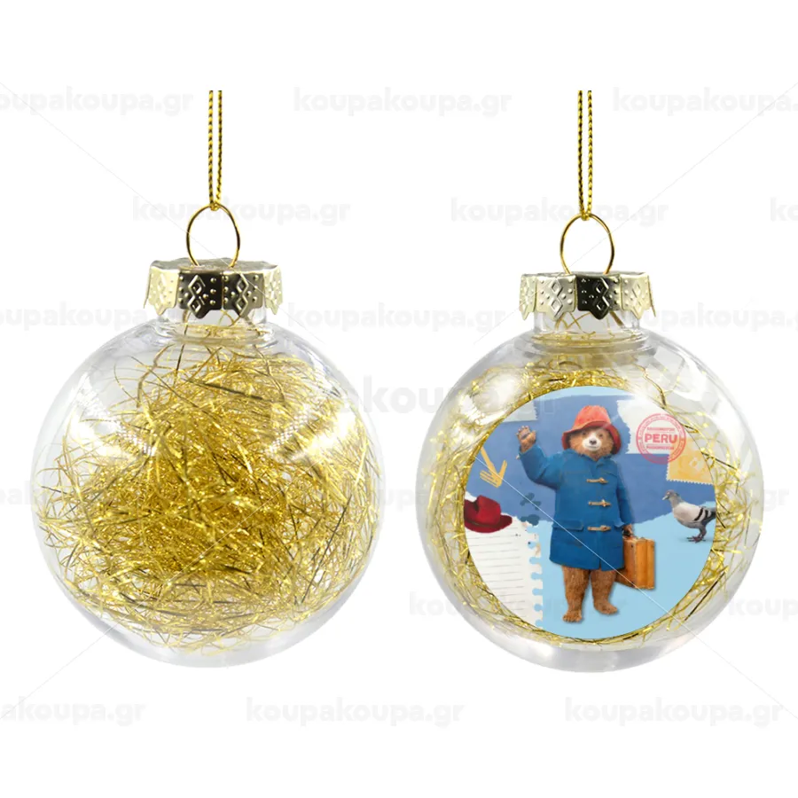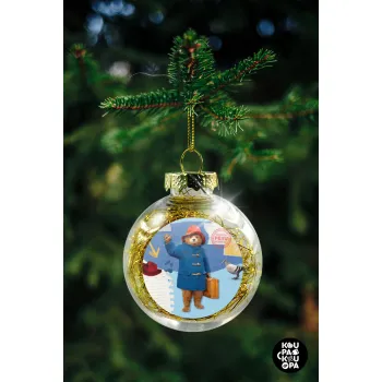Αρκουδάκι Πάντινγκτον, Transparent Christmas tree ball ornament with gold filling 8cm