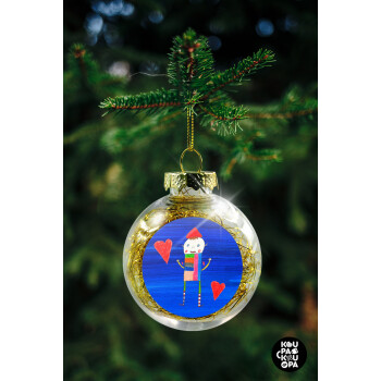 Ο Αλέξανδρος ζωγραφίζει την Αγάπη, Transparent Christmas tree ball ornament with gold filling 8cm