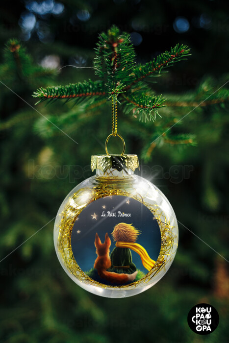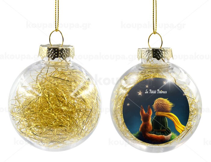 Little prince, Transparent Christmas tree ball ornament with gold filling 8cm