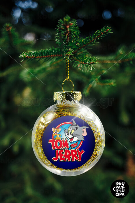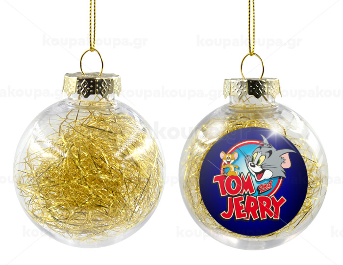 Tom and Jerry, Transparent Christmas tree ball ornament with gold filling 8cm