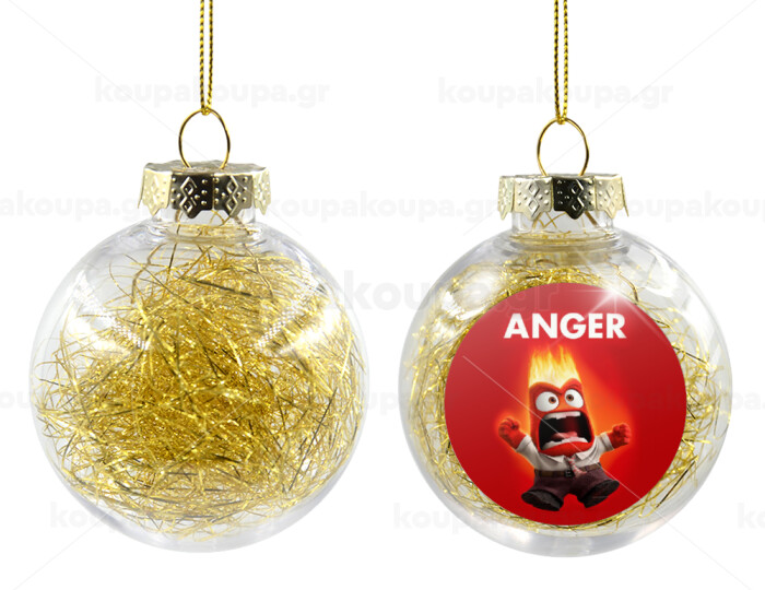 Anger, Transparent Christmas tree ball ornament with gold filling 8cm
