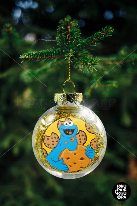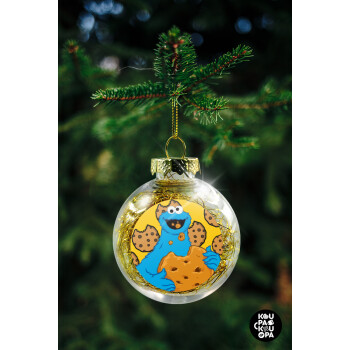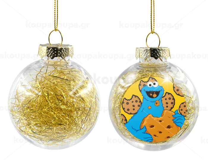 Cookie Monster, Transparent Christmas tree ball ornament with gold filling 8cm