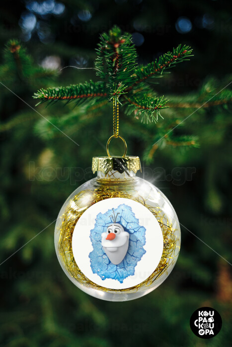 Frozen Olaf, Transparent Christmas tree ball ornament with gold filling 8cm