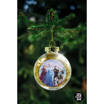 Frozen, Transparent Christmas tree ball ornament with gold filling 8cm