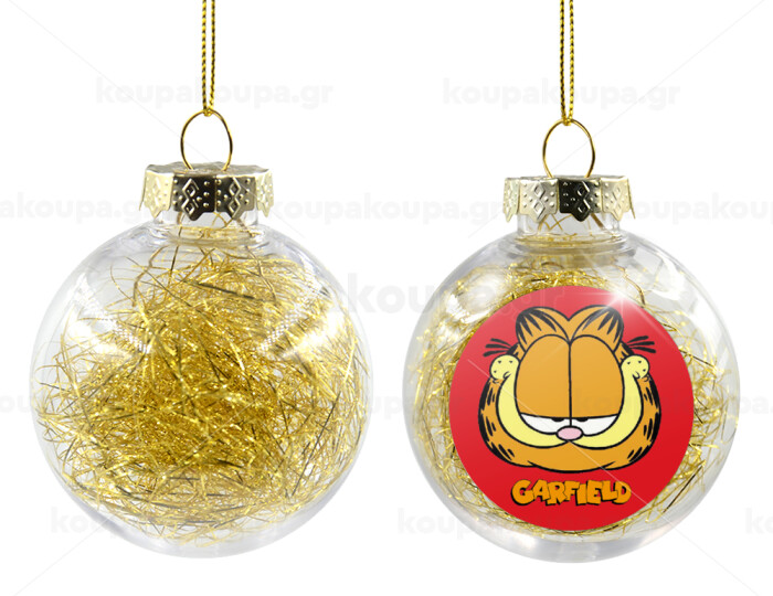 Garfield, Transparent Christmas tree ball ornament with gold filling 8cm