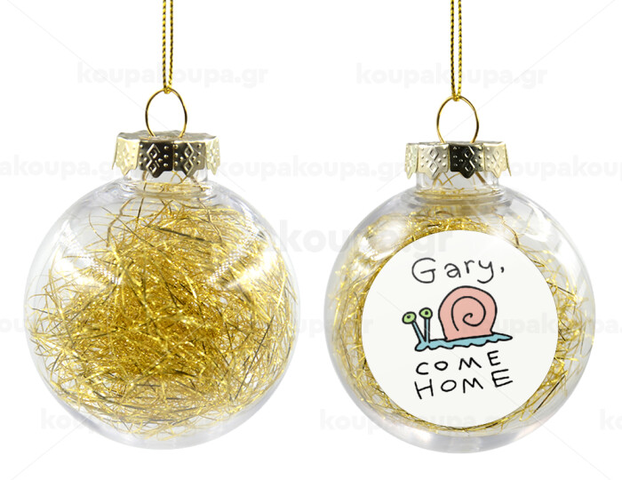 Gary come home, Transparent Christmas tree ball ornament with gold filling 8cm