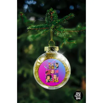 Huntrix Kpop Girls, Transparent Christmas tree ball ornament with gold filling 8cm