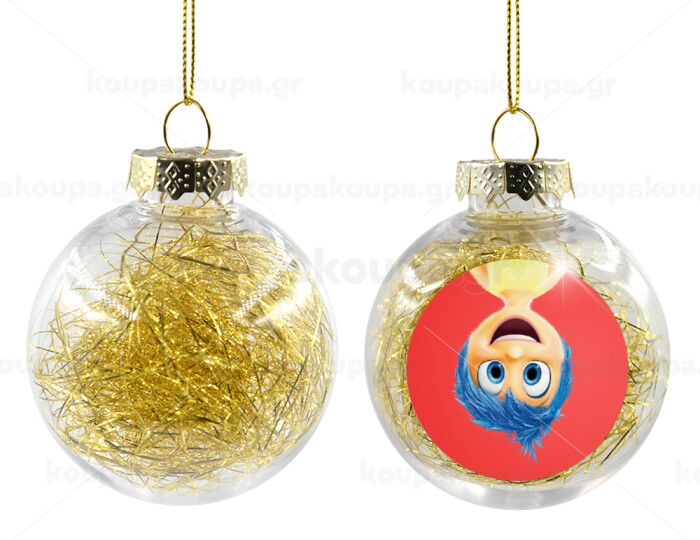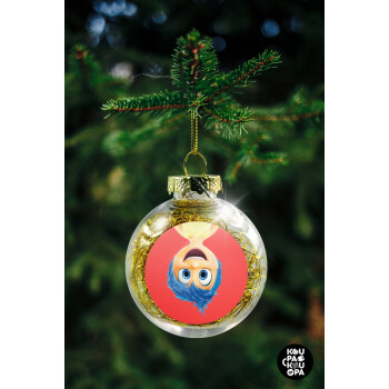 joy, Transparent Christmas tree ball ornament with gold filling 8cm