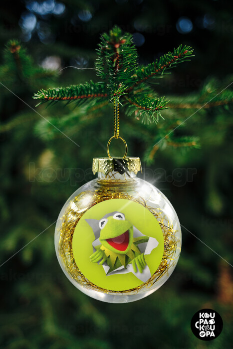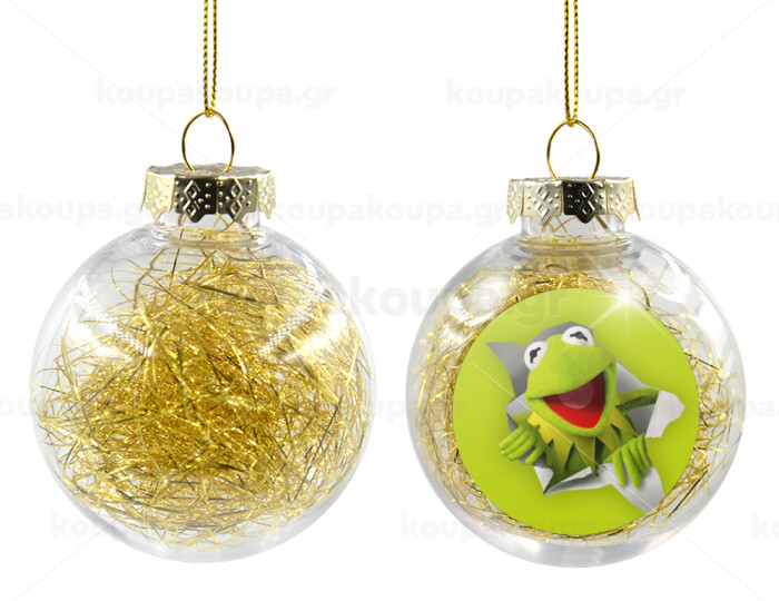 Kermit the frog, Transparent Christmas tree ball ornament with gold filling 8cm