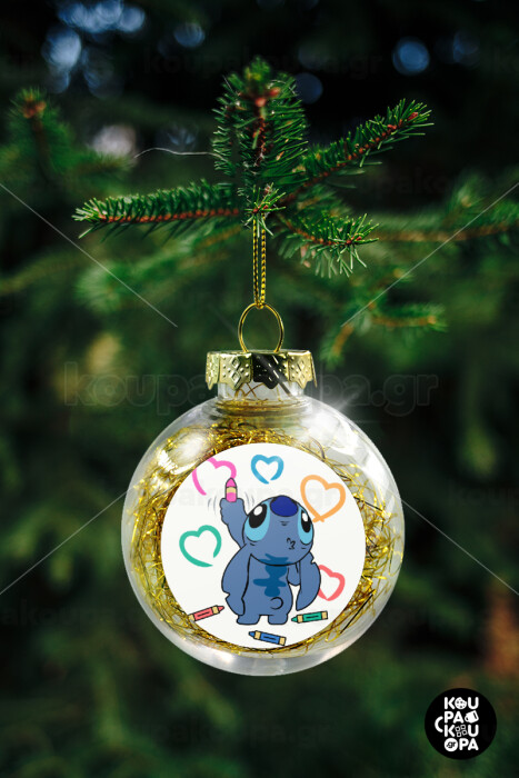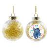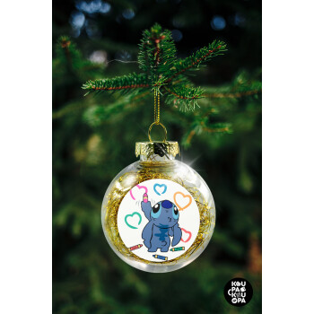 Lilo & Stitch painting, Transparent Christmas tree ball ornament with gold filling 8cm
