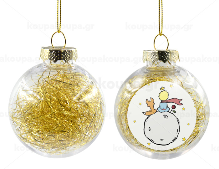 Little prince, Transparent Christmas tree ball ornament with gold filling 8cm