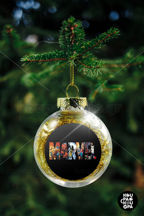 MARVEL Black, Transparent Christmas tree ball ornament with gold filling 8cm