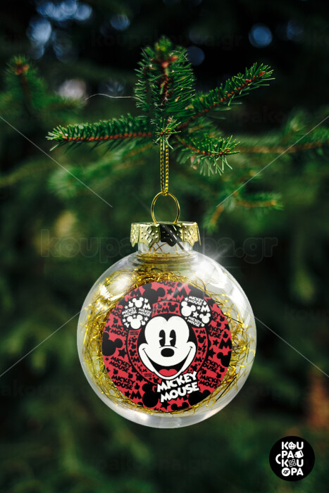 Mickey Mouse, Transparent Christmas tree ball ornament with gold filling 8cm
