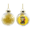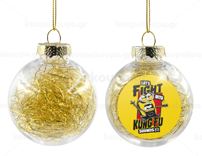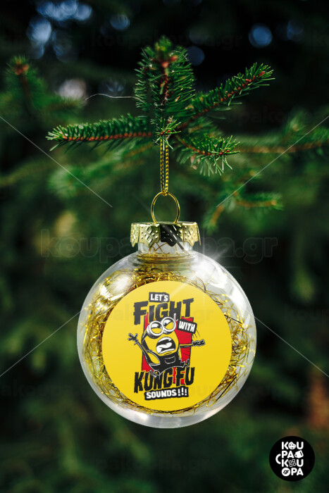 Minions Let's fight with kung fu sounds, Transparent Christmas tree ball ornament with gold filling 8cm