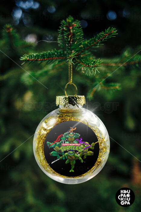Ninja turtles, Transparent Christmas tree ball ornament with gold filling 8cm