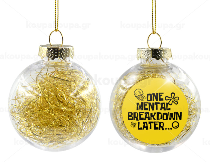 one mental breakdown later bob spongebob, Transparent Christmas tree ball ornament with gold filling 8cm