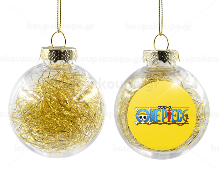 Onepiece logo, Transparent Christmas tree ball ornament with gold filling 8cm