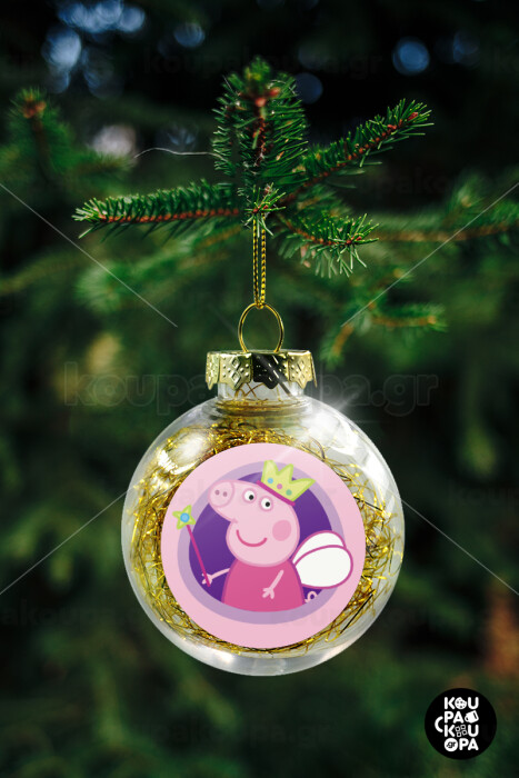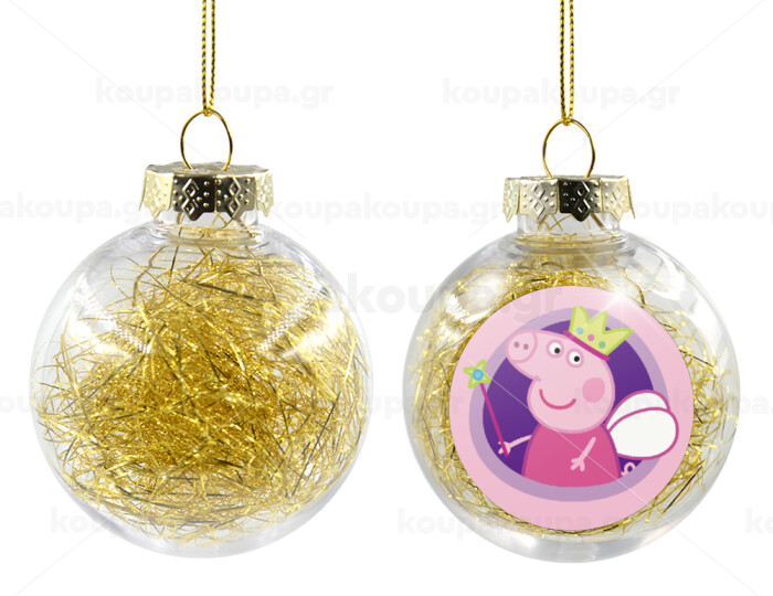 Peppa pig Queen, Transparent Christmas tree ball ornament with gold filling 8cm