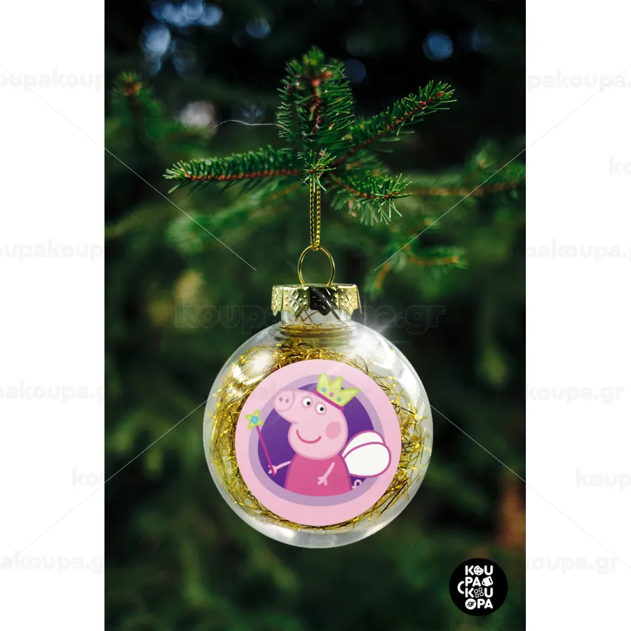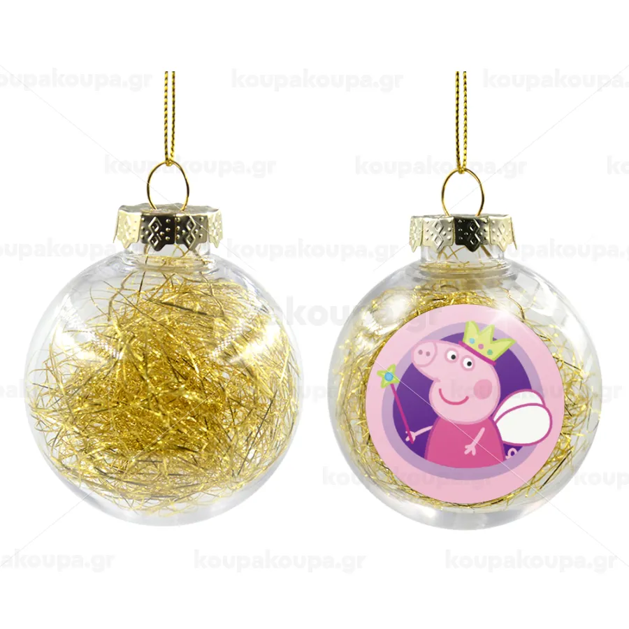 Peppa pig Queen, Transparent Christmas tree ball ornament with gold filling 8cm