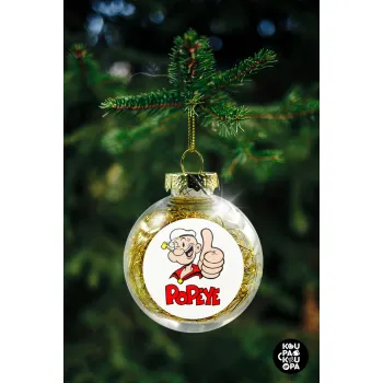 Popeye the sailor man, Transparent Christmas tree ball ornament with gold filling 8cm