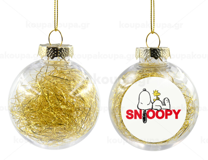 Snoopy sleep, Transparent Christmas tree ball ornament with gold filling 8cm