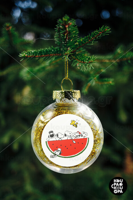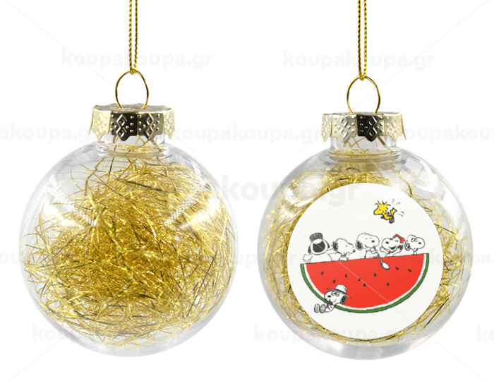 Snoopy summer, Transparent Christmas tree ball ornament with gold filling 8cm