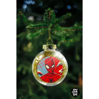 Spiderman kid, Transparent Christmas tree ball ornament with gold filling 8cm