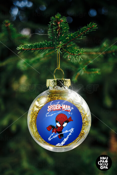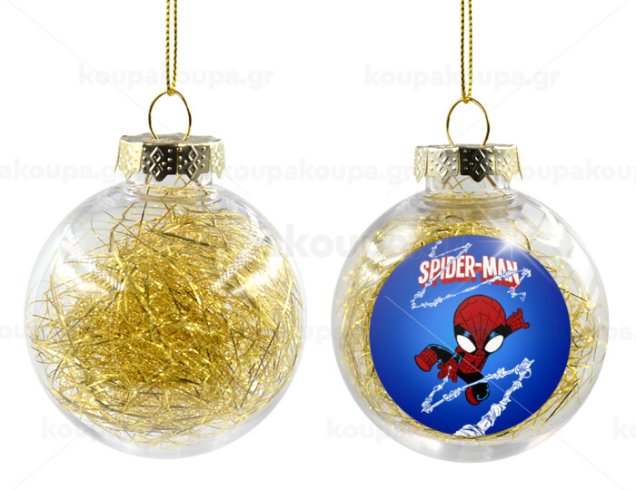 Spiderman kid, Transparent Christmas tree ball ornament with gold filling 8cm