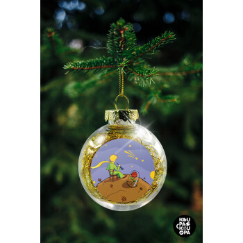The Little prince planet, Transparent Christmas tree ball ornament with gold filling 8cm