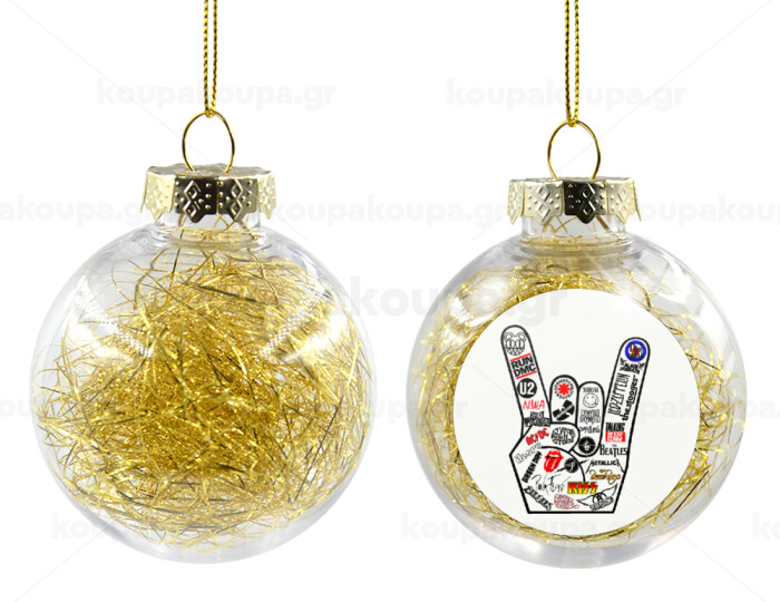 Best Rock Bands hand, Transparent Christmas tree ball ornament with gold filling 8cm