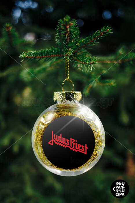 Judas Priest, Transparent Christmas tree ball ornament with gold filling 8cm
