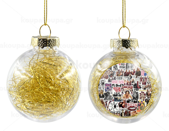 Maneskin stickers, Transparent Christmas tree ball ornament with gold filling 8cm