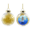 Χριστουγεννιάτικο διακοσμητικό στολίδι διάφανο με μεταλιζέ angel hair εσωτερικά σε μέγεθος 8cm, ελαφρύ σε μέγεθος για να μην κρεμάει το κλαδάκι, με κορδόνι στήριξης για τα κλαδάκια.