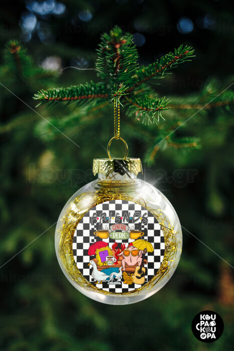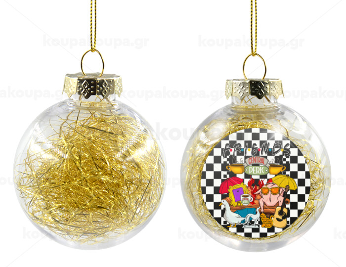 Friends, Transparent Christmas tree ball ornament with gold filling 8cm