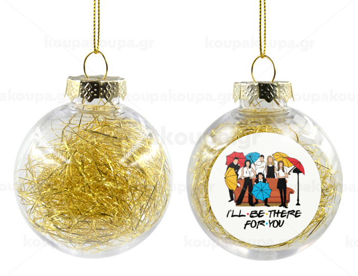Friends cover, Transparent Christmas tree ball ornament with gold filling 8cm